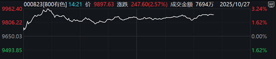 10月27日早盘,A股三大指数震荡走强,沪指继续上攻4000点关口。有色板块高开高走,小金属、工业金属等有色细分板块领涨,中证800有色指数涨幅超2%,延续三连涨。(数据来源wind,截至14:20)
