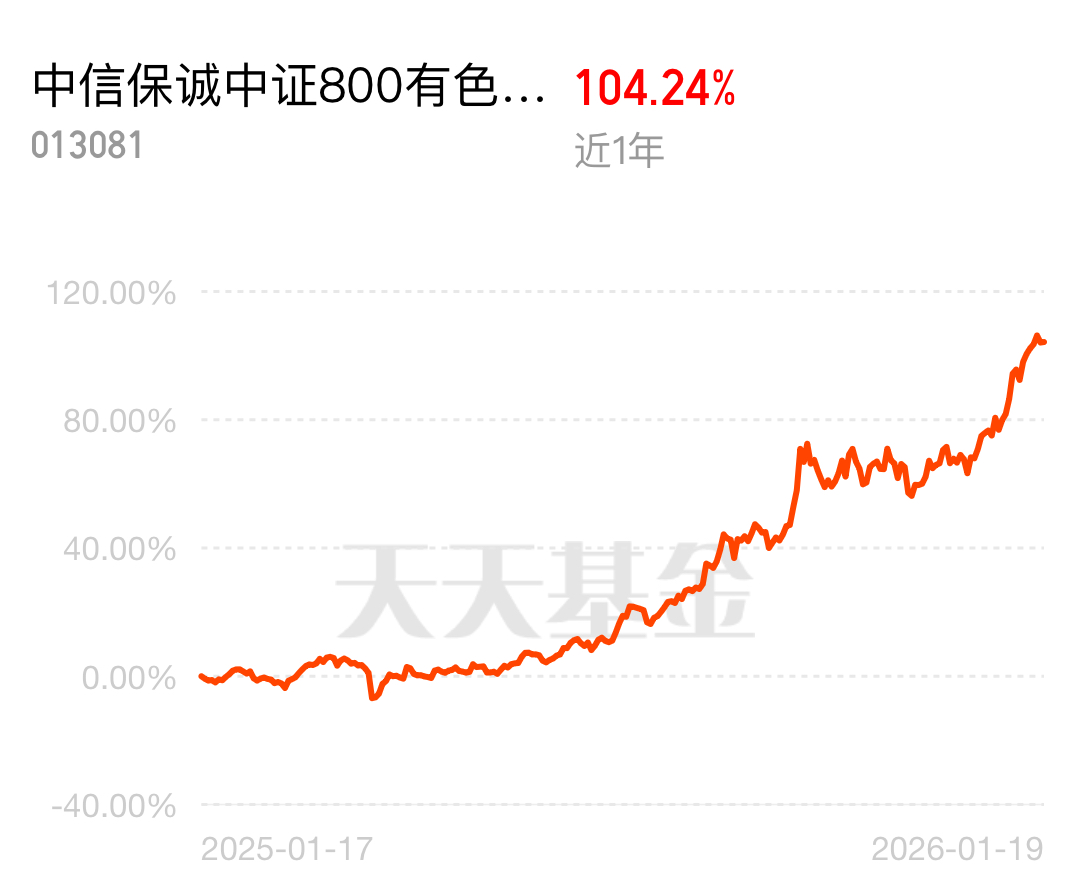 $中信保诚中证800有色指数(LOF)C$ 含量量高,近1年上涨104.24%,近3年、近5年业绩同类中的NO1,中证800有色指数成分股全面覆盖铜、铝、稀土、锂等工业金属、能源及稀有金属,不论细分赛道怎么轮动也不用担心会踏空。我上周有减手上的工业金属,趁回调分批接回,今天走800有色接回1万。