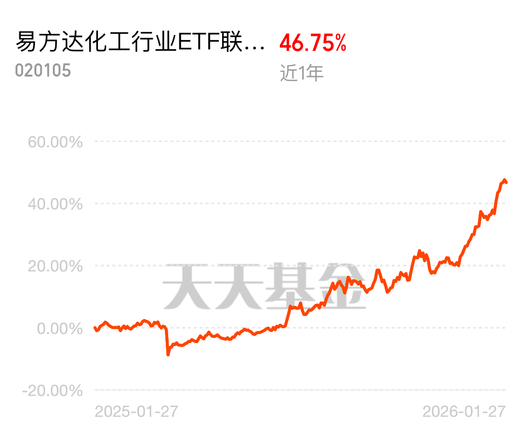 现在市场都在说有色涨完涨化工,易方达化工行业ETF联接C近1年涨了46.75%超