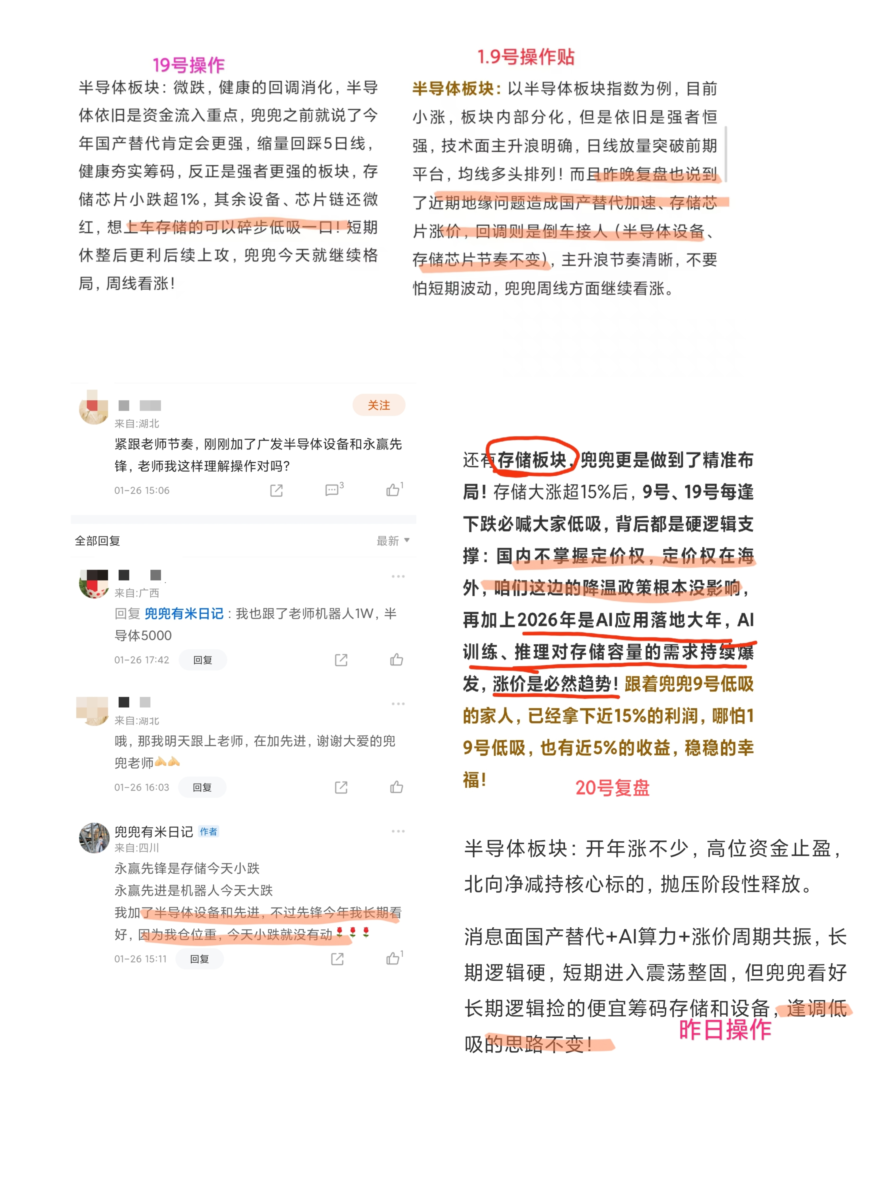 再说说存储芯片,咱这节奏也是拿捏得死死的!9号、19号、26号、29号提示的低吸点位,是不是提示之后就大涨?这节奏,牛不牛!涨价周期依旧中长期看好!
