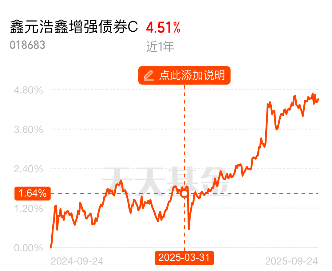 别让短期闲置的钱白白躺平,鑫元浩鑫增强债券C值得盯。近1年涨4.51%,在稳健赛道里表现亮眼,现在上车,闲钱能慢慢生收益。