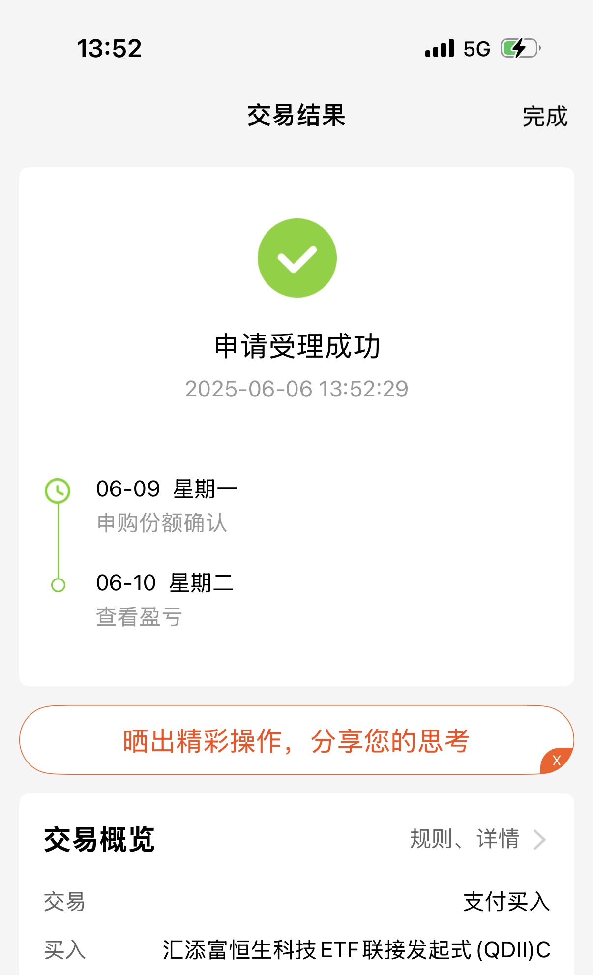 原本昨晚走得好好的,谁曾想特朗普和马斯克互掐起来了,导致特斯拉股价大跌,拖累了美股指数。这种情绪很快就蔓延到了A股,导致在这个关键时刻,也有不少资金选择砸盘A股科技股!所以今天$汇添富恒生科技ETF联接发起式(QDII)C$ 调整,但我觉得又是可遇不可求的低吸买点,要珍惜恒生科技5200点左右的筹码。