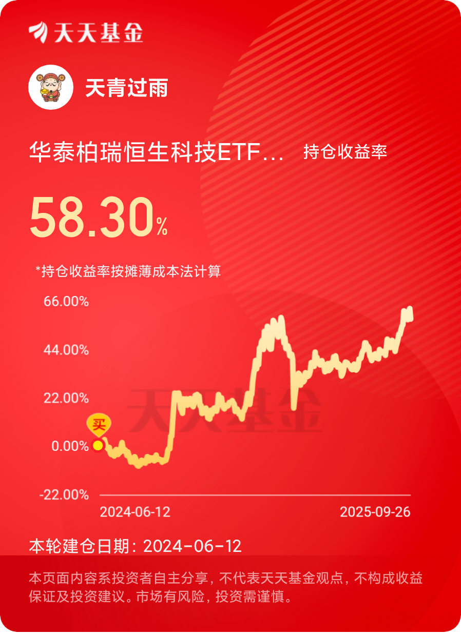 #固态电池最新突破:能量密度创新高# 华泰恒科这基可以啊,今天盘中又涨一个多点,不声不响的,近一年给我赚了41%多,近三个月也涨了14%+。看来港股虽然波折,但长期价值还是在的。$华泰柏瑞恒生科技ETF联接(QDII)C$ #晒收益#
