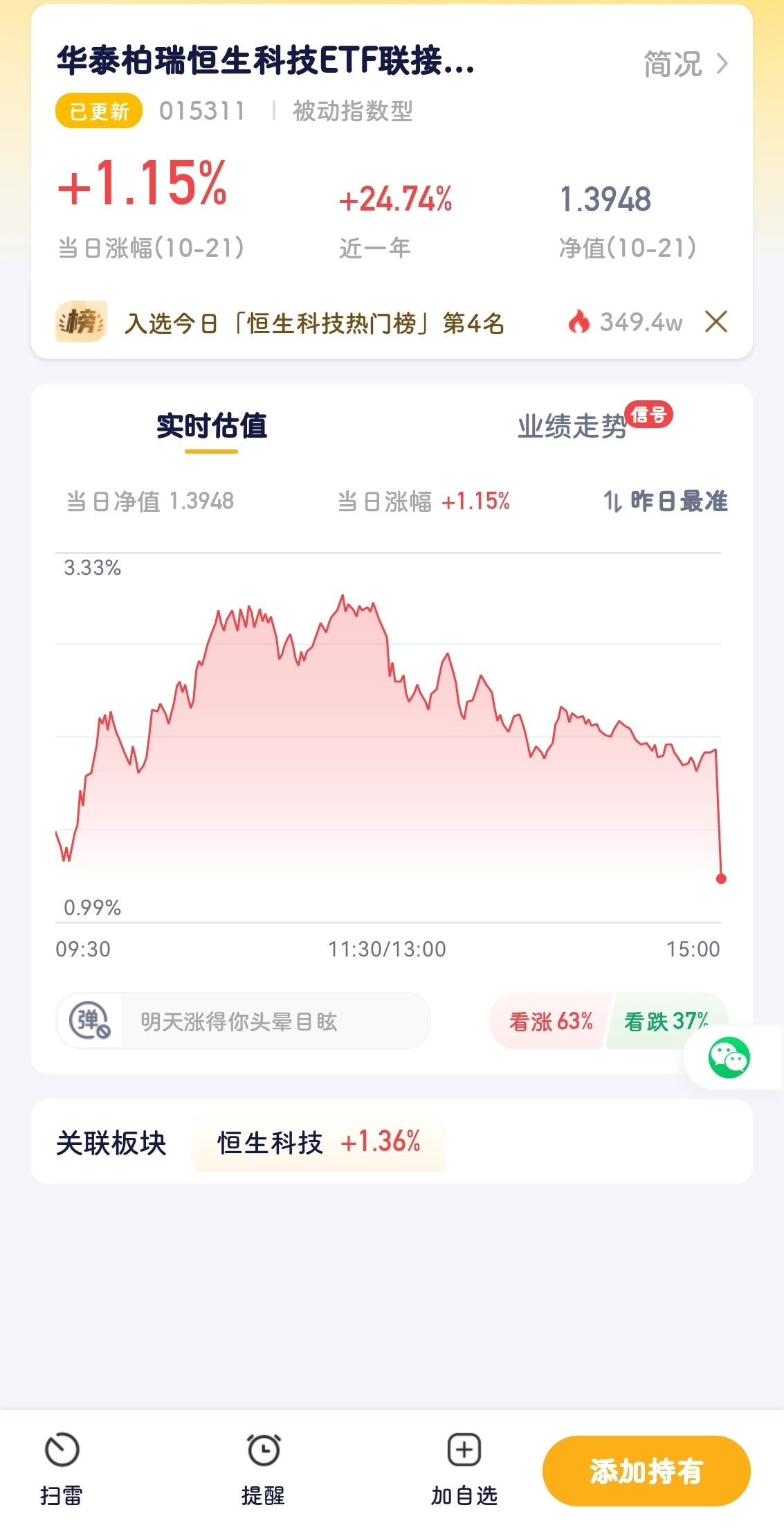最近恒生科技确实折腾,17号大跌后,不少人都在问要不要割肉。但南向资金当天反而净买了快58亿港元,显然是看好长期价值 。关键是外资机构都在加仓,瑞银不仅把科技当全球首选行业,还预测中国科技股明年收益能涨近40% 。想布局又怕踩不准点的话,华泰柏瑞是个不错的选择,20号市场反弹它立马跟上,净值涨了3个点,比自己瞎买股票稳多了,适合想长期蹲科技赛道的人。