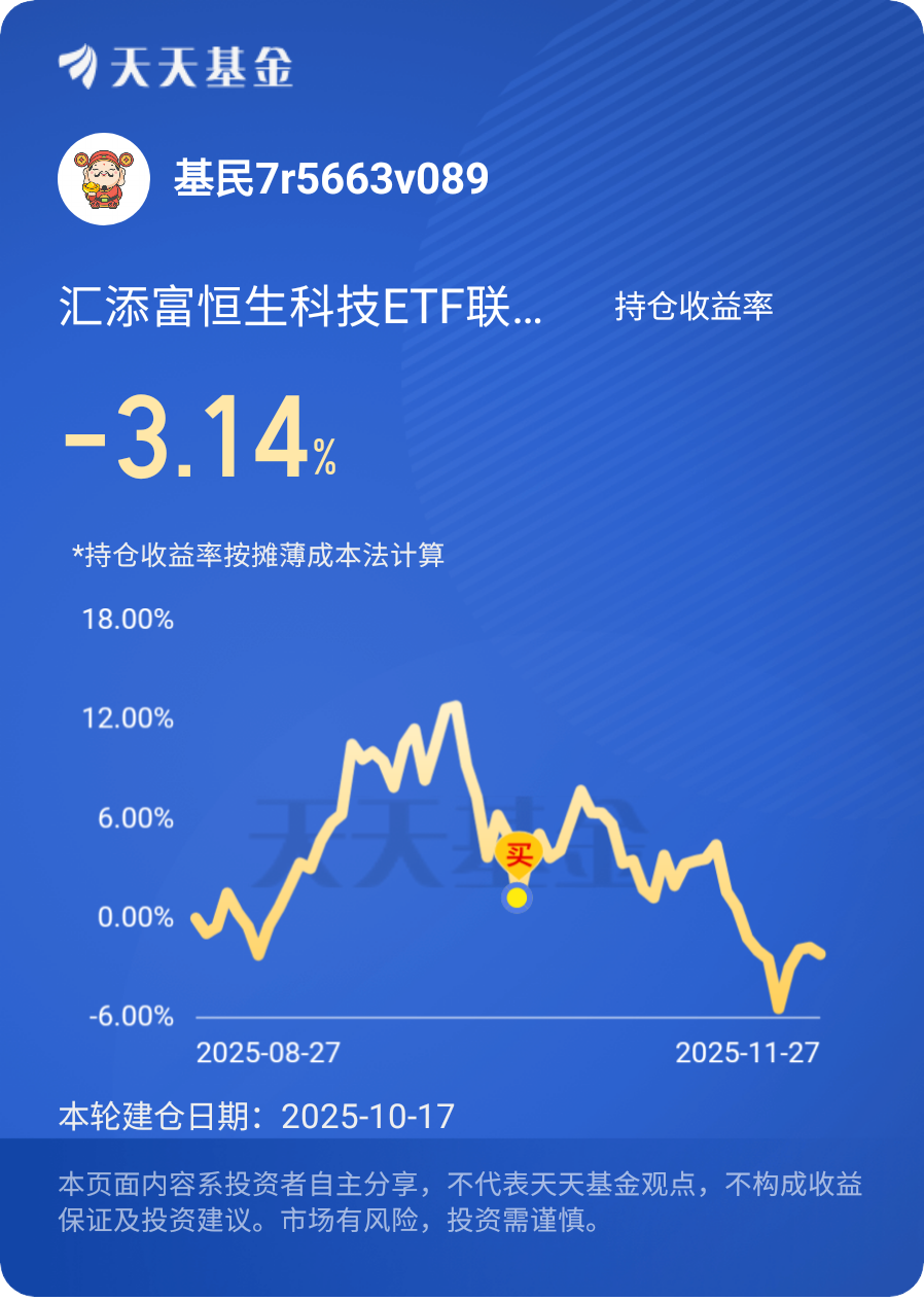 $汇添富恒生科技ETF联接发起式(QDII)C$ #晒收益#