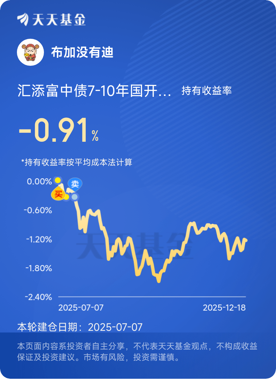 其次,产品的费率优势与运作模式契合长期持有需求。作为ETF联接基金的E类份额,汇添富中债7-10年国开债E通常不收取申购费,且管理费率、托管费率处于行业较低水平,大幅降低了投资者的长期持有成本。对于计划长期加仓、分批布局的投资者而言,低费率意味着更多的收益留存,积少成多之下,长期复利效应更为显著。此外,基金采用被动式指数化投资,紧密跟踪标的指数,力求实现与指数表现一致的投资回报,避免了主动管理型债券基金可能存在的择时、择券风险,运作风格更加稳健透明。