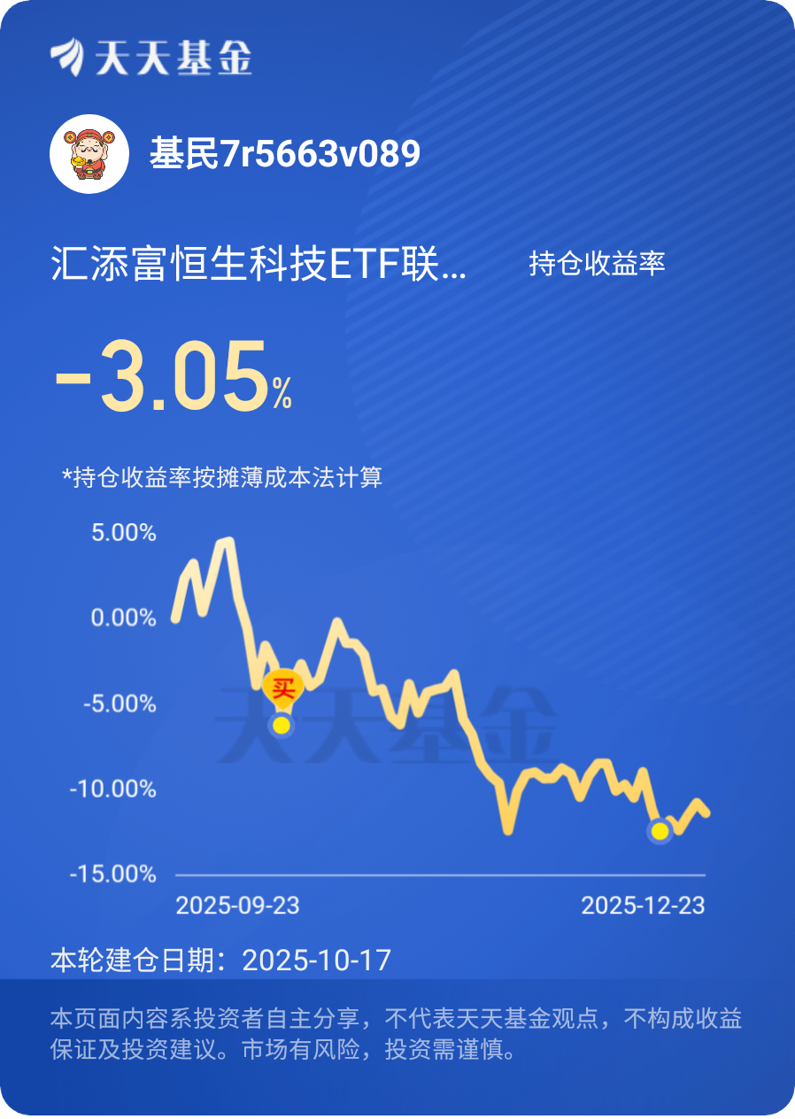 $汇添富恒生科技ETF联接发起式(QDII)C$#晒收益#