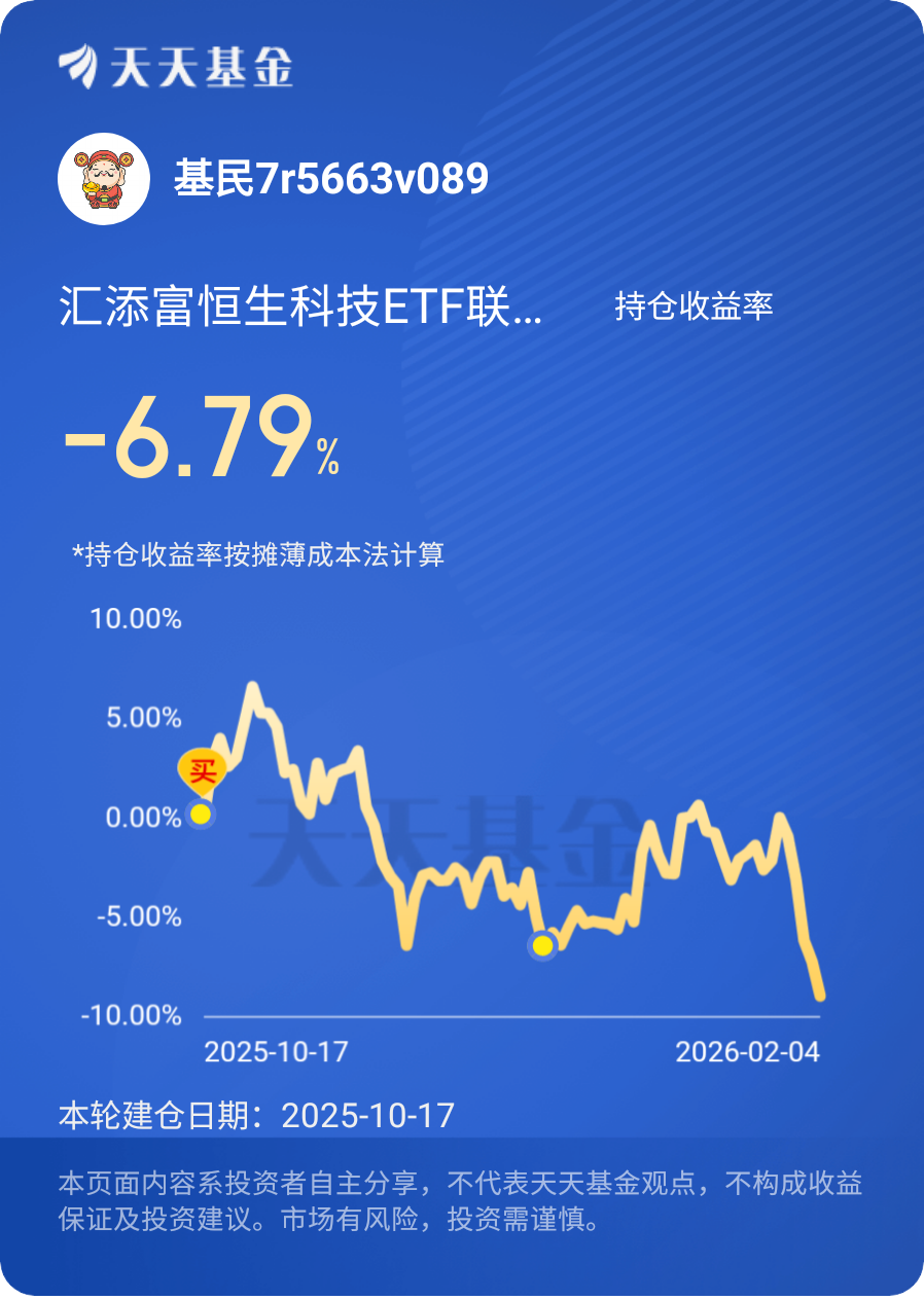 $汇添富恒生科技ETF联接发起式(QDII)C$ #晒收益#