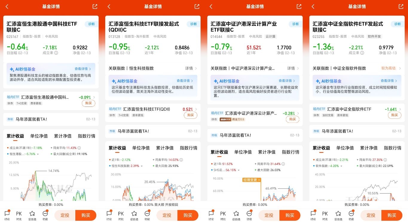#马年添富看港科# $汇添富恒生科技ETF联接发起式(QDII)C$ $汇添富中证沪港深云计算产业ETF联接C$ $汇添富恒生科技ETF联接发起式(QDII)C$ $汇添富恒生港股通中国科技ETF联接C$ 今年春节,AI的存在感真的无处不在。春晚的机器人表演、亲友间讨论的AI大模型,还有直播间里AI生成的年货推荐,都让我真切感受到科技与生活的融合。这种感受,也让我对港股科技板块,尤其是AI产业链的投资价值有了新的思考,汇添富的几只科技主题基金,就是我重点关注的方向。