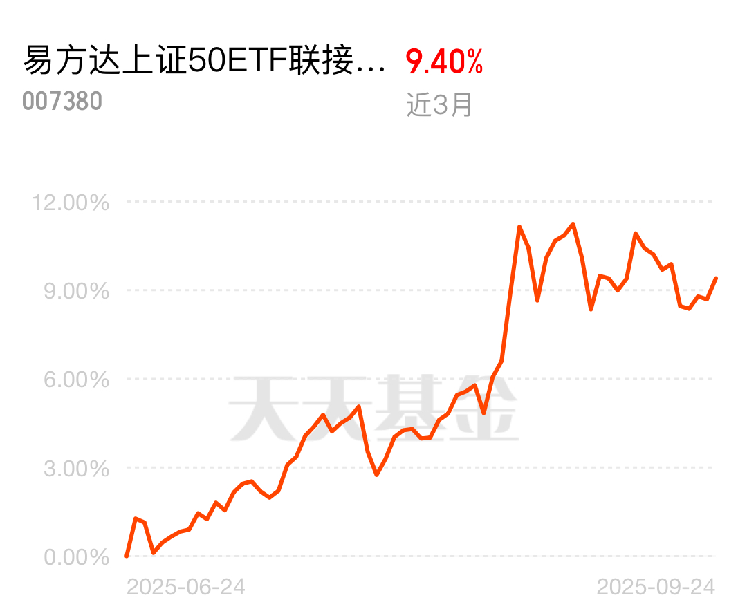 最近成长股涨得猛,高估值风险要警惕,易方达上证50ETF联接C可留意。近3个月9