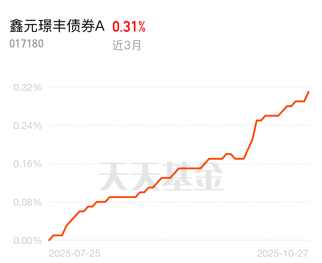 新手刚理财总怕亏,其实债券基金是个好选择。比如鑫元璟丰债券A,近3个月收益0.31%,风险不高还能赚点,比放余额宝划算多了。$鑫元璟丰债券A$