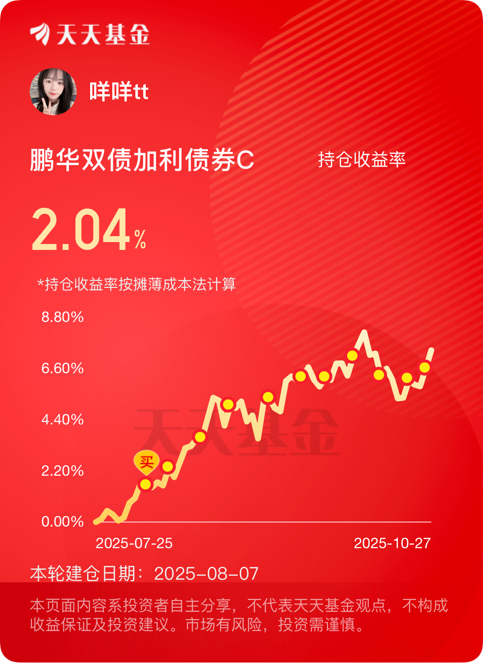 喜提74蛋!赚麻了,买纯债真的不如投这个,我8月开始分批布局的$鹏华双债加利债券