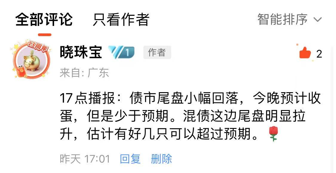 注意,如果播报后,债市尾盘拉升或者跳水,17点左右我会在估值帖子的评论区更新情况。