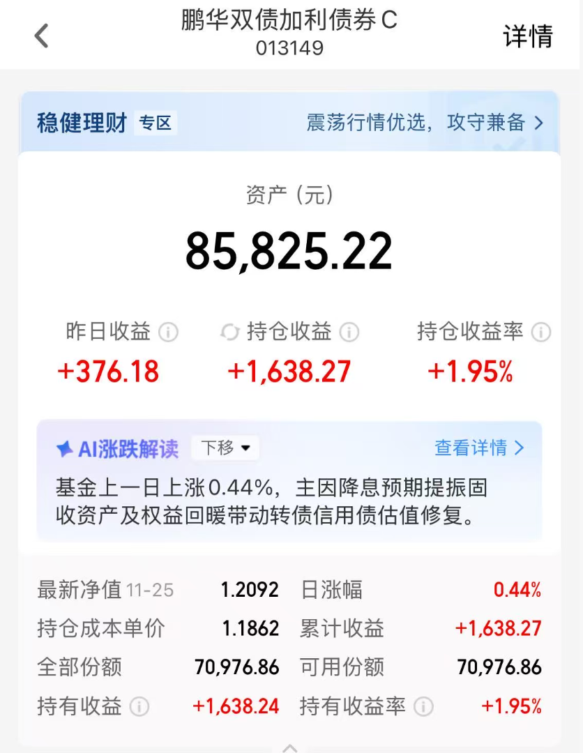 固收+$鹏华双债加利债券C(OTCFUND|013149)$