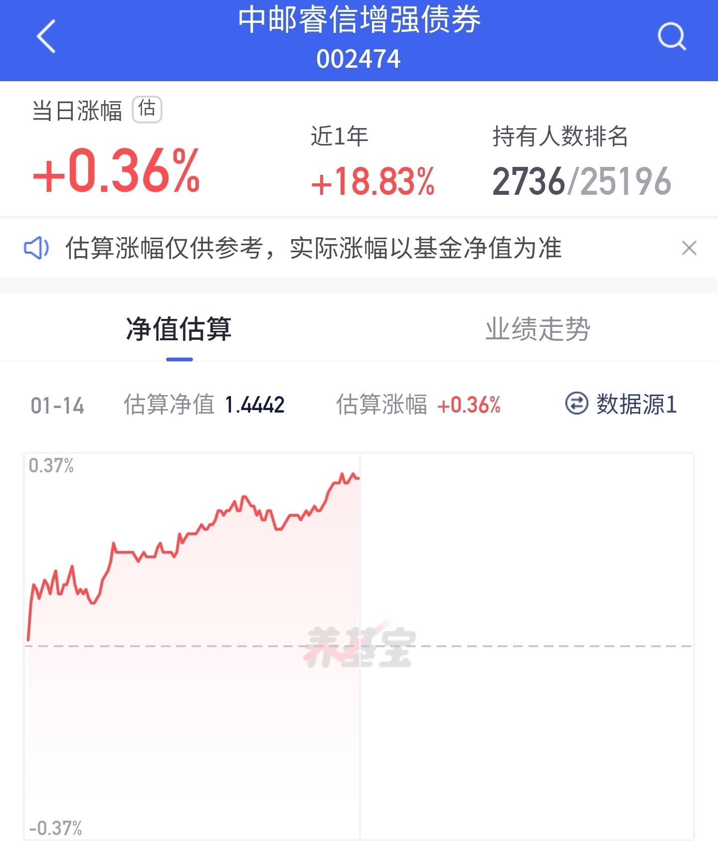 混债收益超纯债!$中邮睿信增强债券A$ 主投信用债+可转债+股票,今日估值收36个恐龙蛋,当前回调是布局好时机,坚持长期主义
