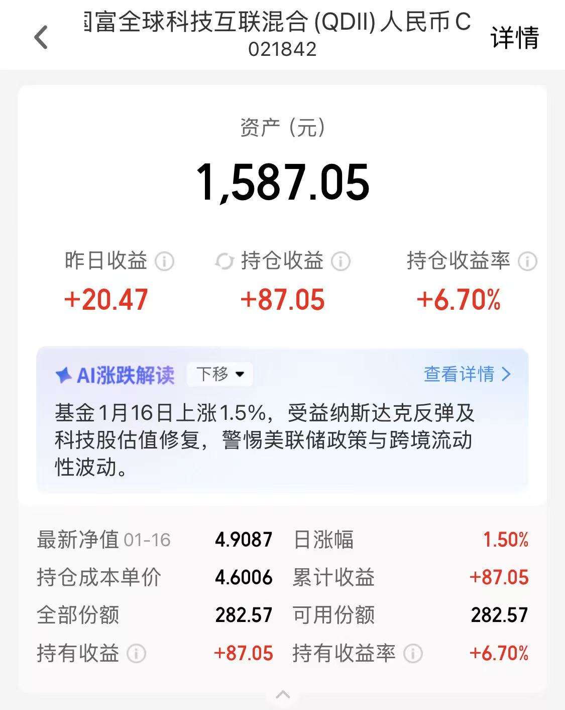 基友推荐的国富这只主动基体验不错,也是限额定投的产品,大家可以参考下。$国富全球科技互联混合(QDII)人民币C(OTCFUND|021842)$
