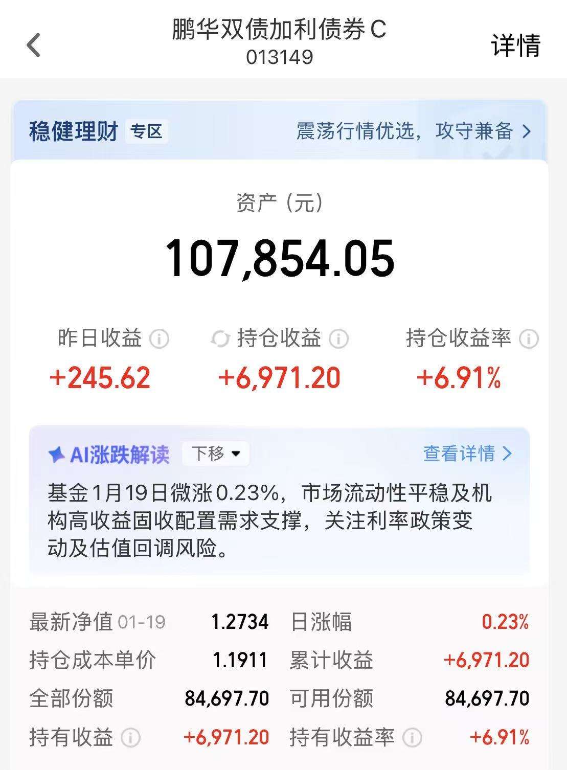 当然,希望基金经理可以有比我更精确的操作,全年依旧稳稳可期,今天再从纯债调整一些过来,再接再厉。