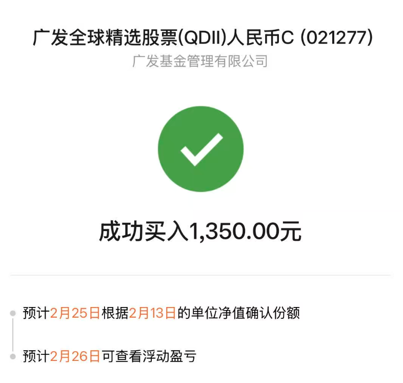 海外:广发全球精选C+5000$广发全球精选股票(QDII)人民币C(OTCFUND|021277)$