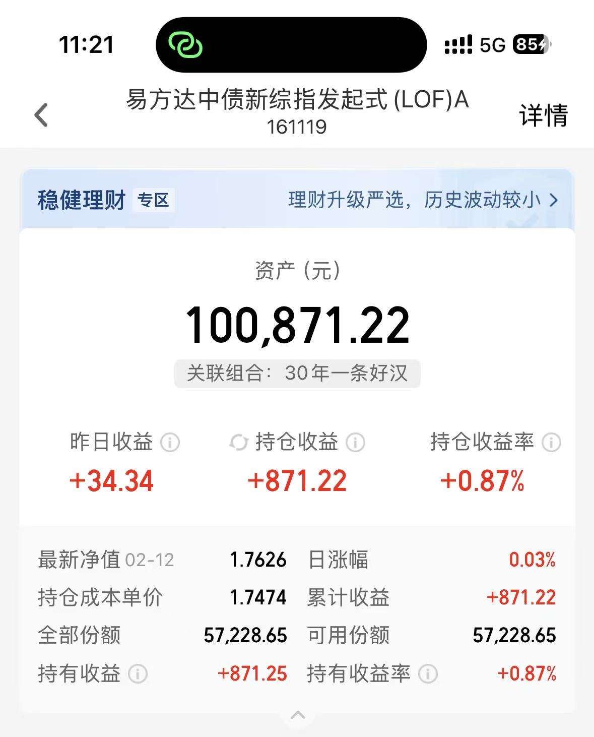 这个老朋友不比多说了经历过一轮股涨债弱的行情,今年债也难崩,股继续等机会,中间值的转债依然可期。46%纯债打底,33%可转债,17%股票形成的“债为盾、转债为矛、权益为锋”组合还是很值得信耐,固收+持有几个月6%+收益,满足了。我今天再补一点。