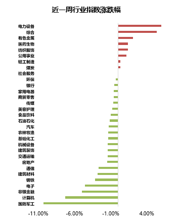 l 上周(2025.9.1-2025.9.5),主要宽基指数多数回调。上证指数下跌1.18%,创业板指上涨2.35%,沪深300下跌0.81%,中证500下跌1.85%,中证1000下跌2.59%,科创50下跌5.42%。风格上,主要风格指数涨跌互现,其中消费(+0.16%)风格领涨。从申万一级行业看,周内各行业涨跌互现,其中领涨的行业有通信(+12.38%)、有色金属(+7.16%)、电子(+6.28%)。(数据来源:iFind)
