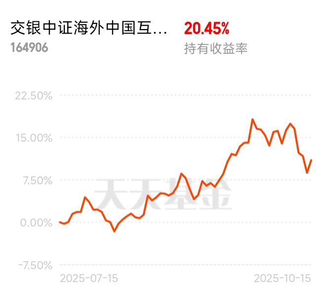 $交银中证海外中国互联网指数(LOF)A$目前收益率达20.45%,继续拿着吧!