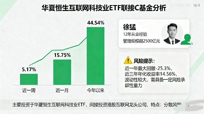该基金主要投资于华夏恒生互联网科技业ETF,间接投资港股互联网龙头公司,具有分散风险、专业管理、流动性好的特点。基金经理徐猛拥有12年从业经验,管理规模超过2500亿元,投资经验丰富。