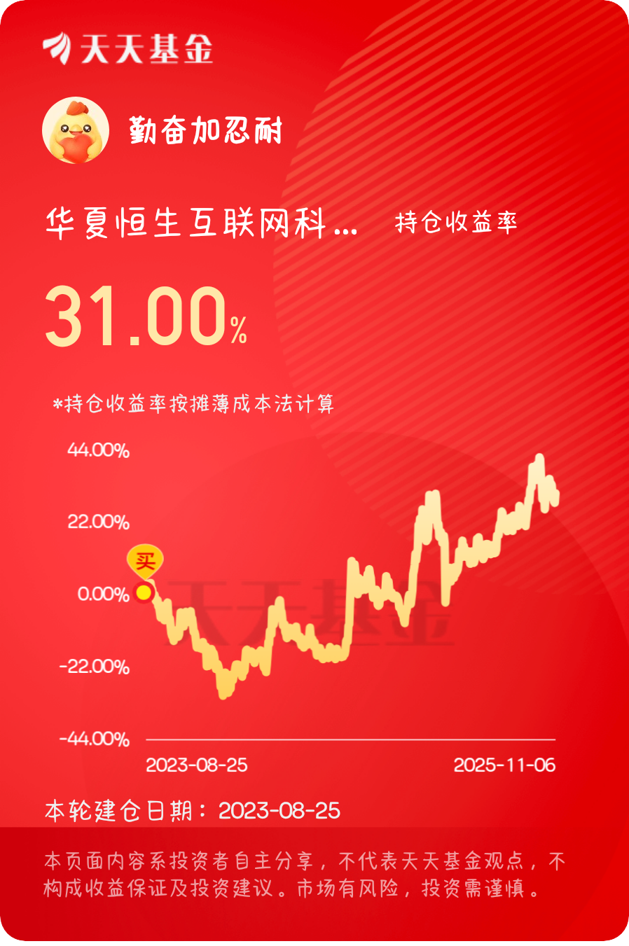 继续加仓,现在资金都比较看好港股,期待后面能快点反弹$华夏恒生互联网科技业ETF联接(QDII)C$ #晒收益#