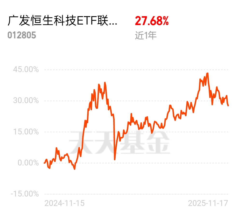 总感觉港股科技股今年的弹性很惊人,继续加仓$广发恒生科技ETF联接(QDII)C$ ,一年能涨27%感觉不错