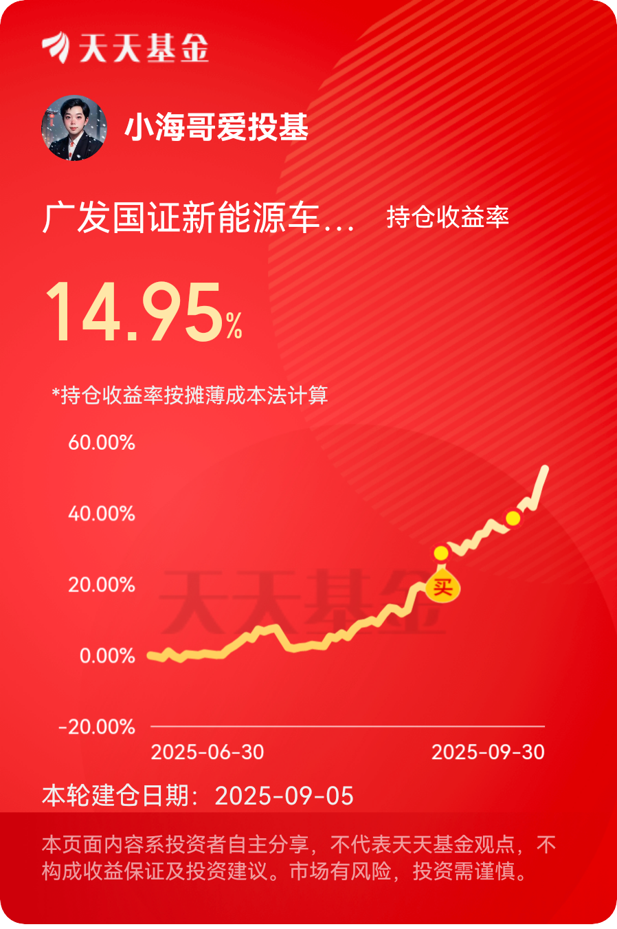 新能源车电池方向是目前市场主线之一,我持有的$广发国证新能源车电池ETF联接C$ (013180)在昨天大涨之后,今晚更新净值再次大涨3.14%,再次往上创了年内新高,持有收益率也逼近15%了,买对了方向确实很爽,我会继续长期持有。#晒收益#