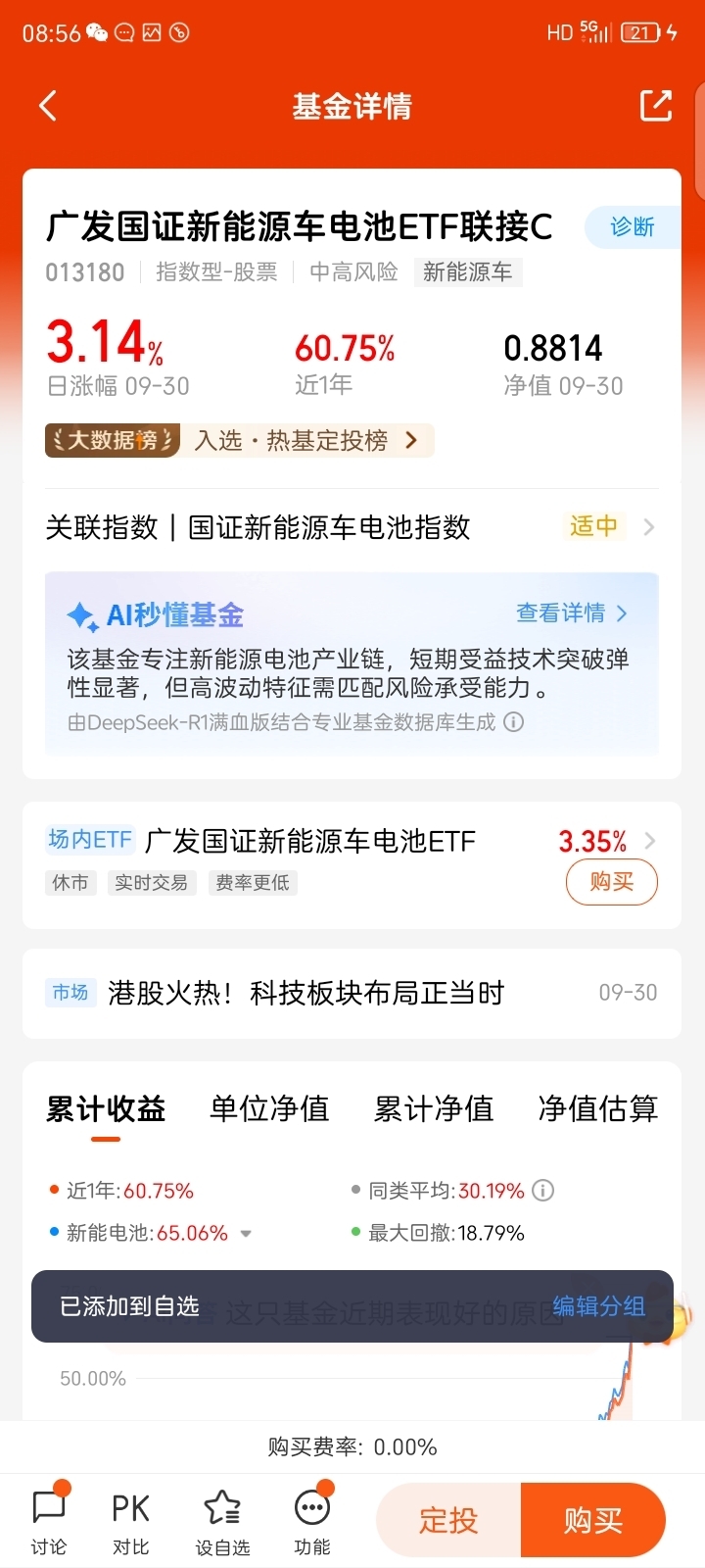 与直接投资个股相比,广发国证新能源车电池ETF联接C具有诸多优势。它不需要投资者具备专业的股票分析能力,也不需要花费大量的时间和精力去挑选个股。投资者只需通过简单的申购和赎回操作,就可以轻松参与到电池行业的投资中。而且,该基金的联接C类份额设计,为投资者提供了更加灵活的投资方式,较低的申购赎回费用,让投资者可以根据市场变化和自身资金需求,更加自由地调整投资仓位。