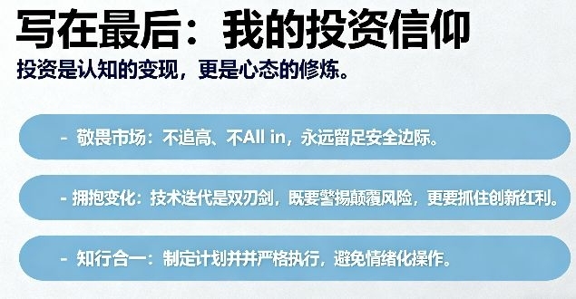 - 敬畏市场:不追高、不All in,永远留足安全边际。
