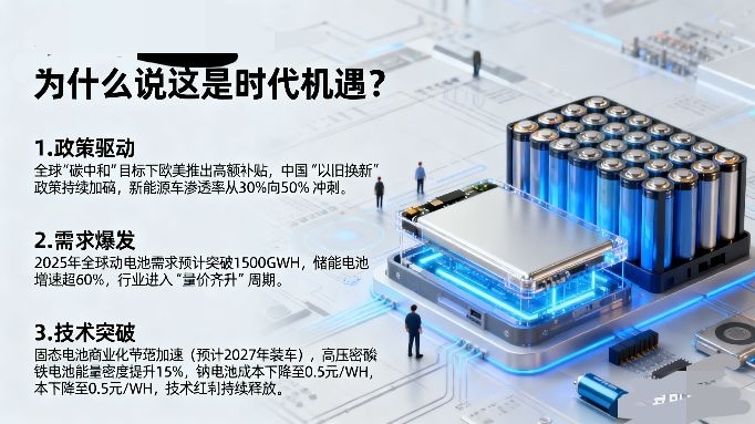 2. 需求爆发:2025年全球动力电池需求预计突破1500GWh,储能电池增速超60%,行业进入“量价齐升”周期。