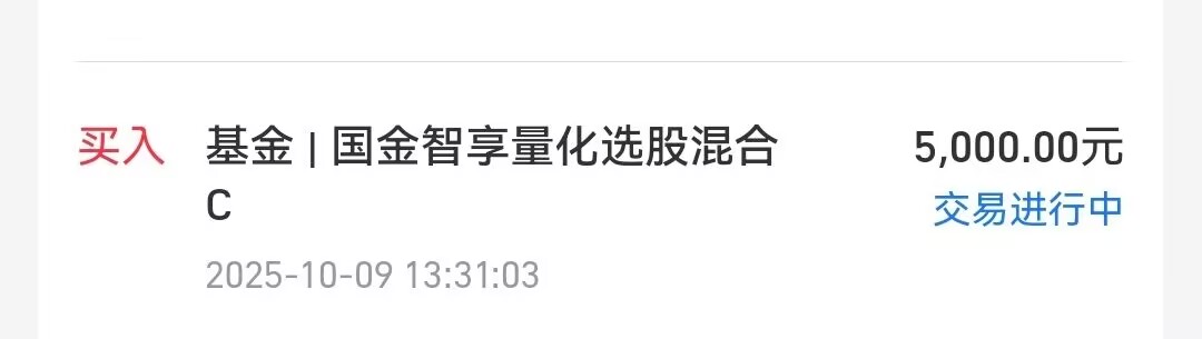 4、$国金智享量化选股混合C(OTCFUND|018824)$ ,买入5000元