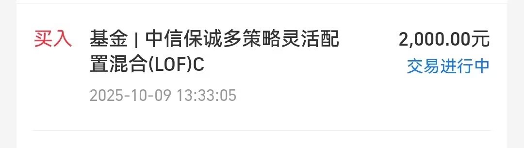 3、$中信保诚多策略混合(LOF)C(OTCFUND|018561)$ ,买入2000元