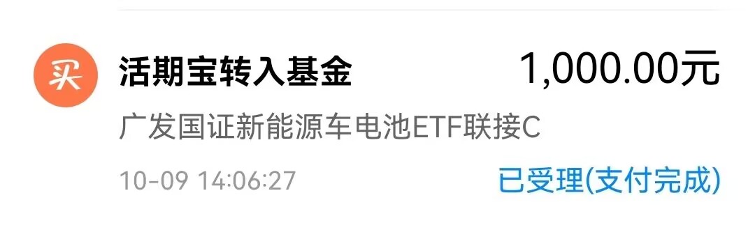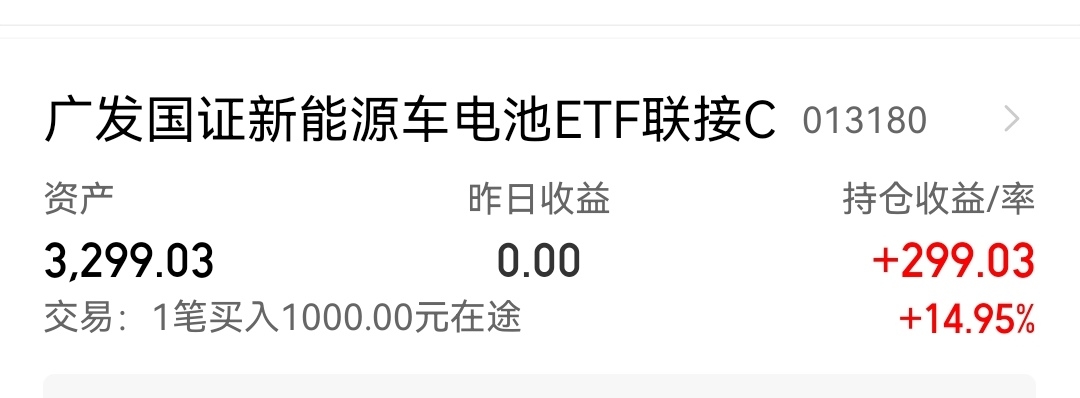 1、$广发国证新能源车电池ETF联接C(OTCFUND|013180)$ ,买入1000元