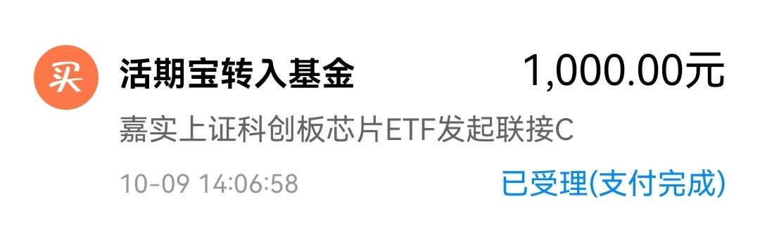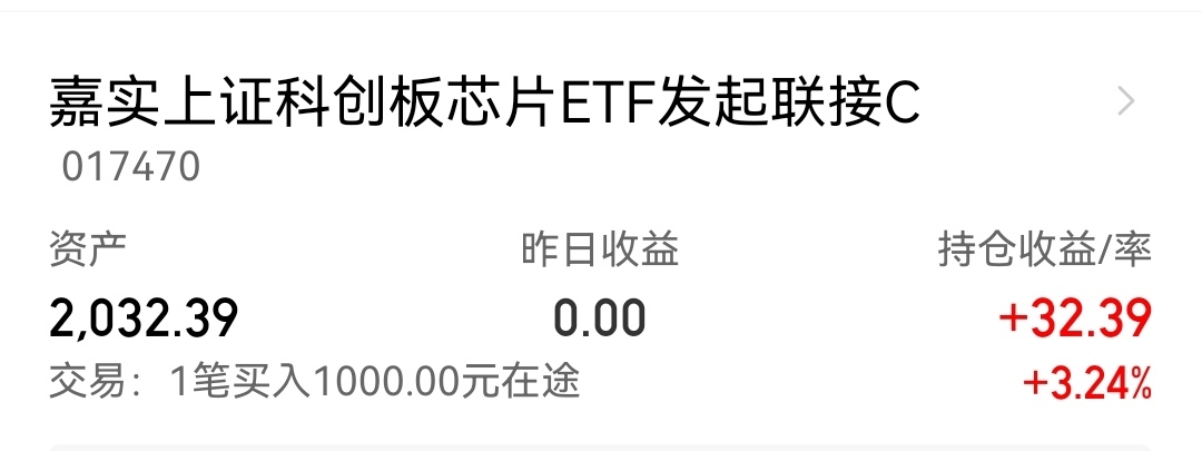 2、$嘉实上证科创板芯片ETF发起联接C(OTCFUND|017470)$ ,买入1000元