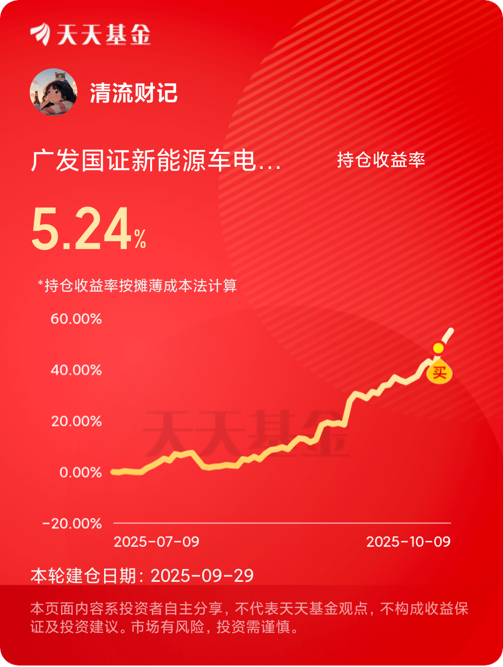 这只基金表现真的不错哦$广发国证新能源车电池ETF联接C$ #晒实盘# 基金净值大涨2%。错过了科技,可千万不要再错过固态电池了。国庆期间官媒罕见同步报道固态电池突破进展的情况。