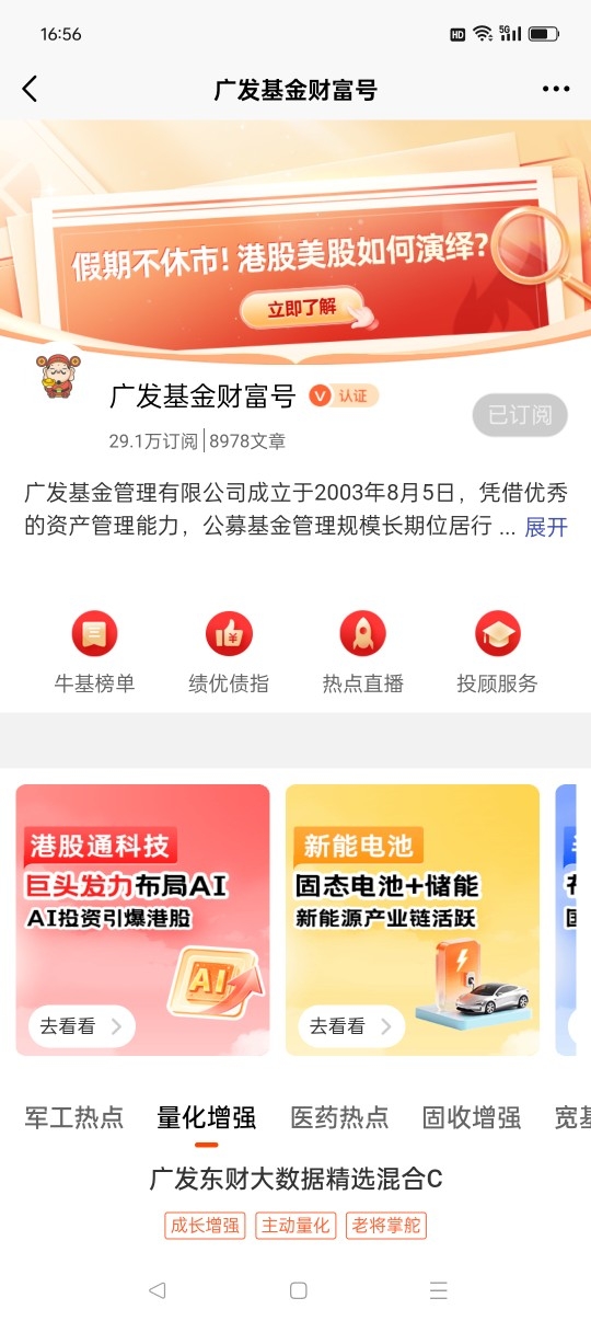 我是广发基金的长期忠实粉丝,目前定投持有10多只广发的基金产品,包括$广发国证新能源车电池ETF联接C$ $广发量化多因子混合A$ $广发新兴成长混合C$ $广发北证50成份指数C$ $广发中证A500ETF联接C$ $广发创业板ETF发起式联接Y$ $广发恒生消费ETF发起式联接(QDII)A$ $广发恒生科技ETF联接(QDII)C$ $广发纳斯达克100ETF联接人民币(QDII)A$ 等,对收益回报和持有体验感到非常满意!我会继续配置广发基金产品,并长期坚定持有!#把握固态电池黄金发展机遇#