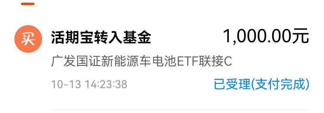 1、$广发国证新能源车电池ETF联接C(OTCFUND|013180)$,买入1000元