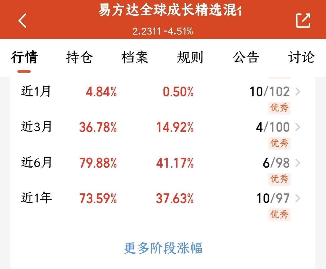 今天股市低开低走,不太平啊,科技板块回调,还是要买点全球科技对冲一下。$易方达全球成长精选混合(QDII)人民币C$ 不仅业绩稳定,抗回撤能力也很强。近一月涨幅4.84%,近三个月涨幅36.78%,近半年涨幅79.88%,不仅远超同类均值,排名也比较靠前,逢低买入了!