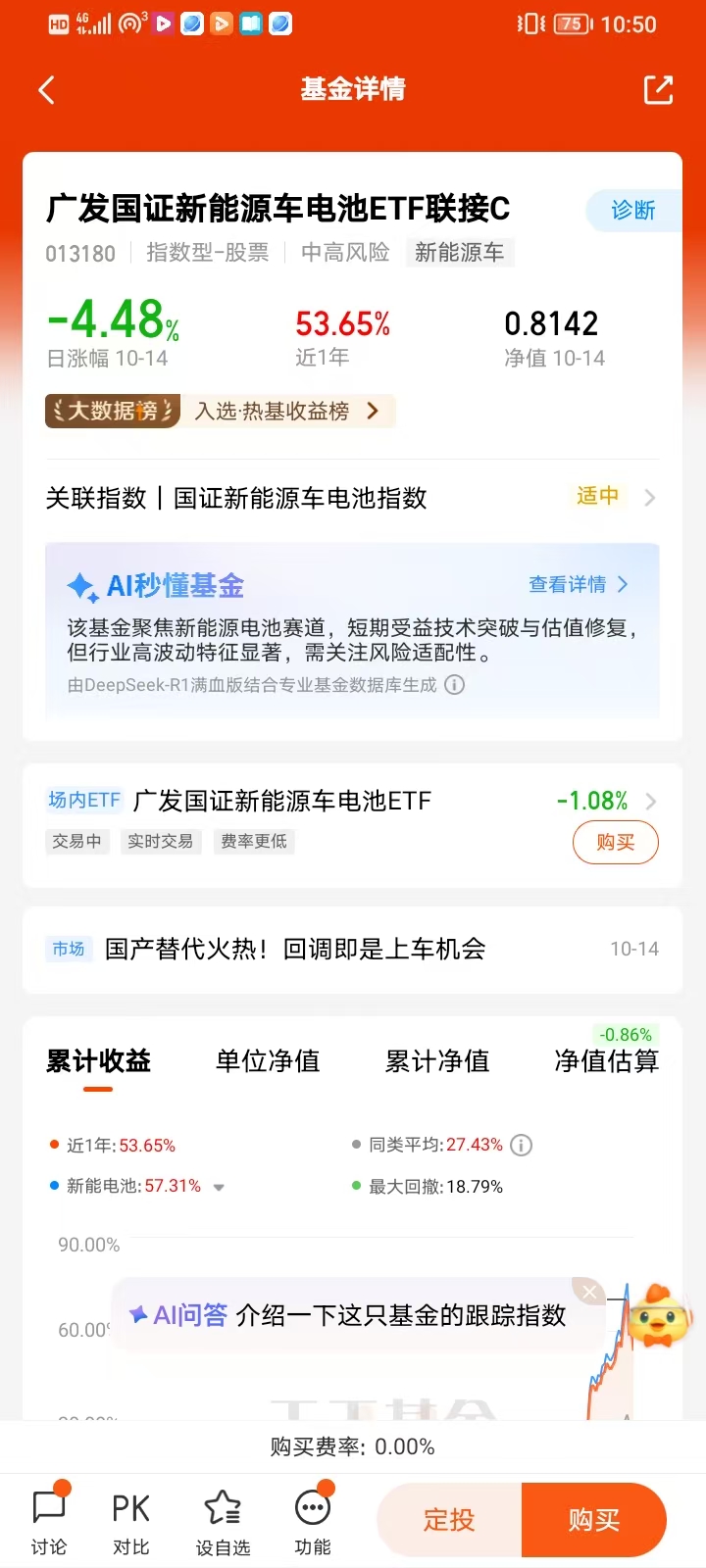 $广发国证新能源车电池ETF联接C(OTCFUND|013180)$