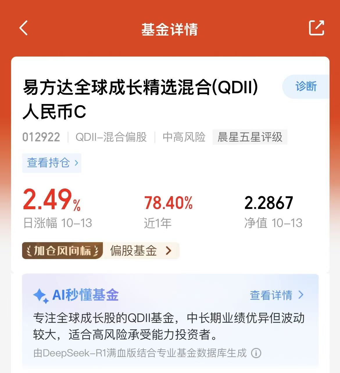 今天A股反弹回暖,盘面表现不错,不过板块分化,科技回调,新能源小涨,美股市场这边昨夜小幅度回调,近期不管是板块还是市场都是波动比较快的,所以单一的市场还是比较难呀,易方达全球成长精选混合(QDII)人民币C是布局全球市场科技赛道的,有A股港股和美股,我觉得科技的行情还没走完,还有很大上涨空间呢,我继续看好这个方向!