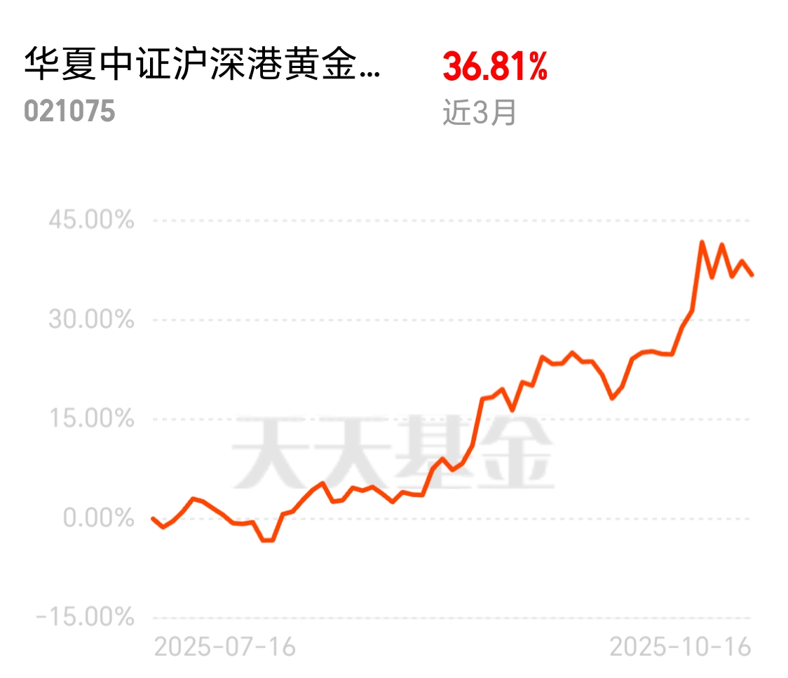最近黄金走势不错,避险需求居高不下,这基近3个月有36%+,近6个月更有收益42%+,当前国际贸易局势紧张,震荡上涨也是加仓的好时机$华夏中证沪深港黄金产业股票ETF发起式联接C$