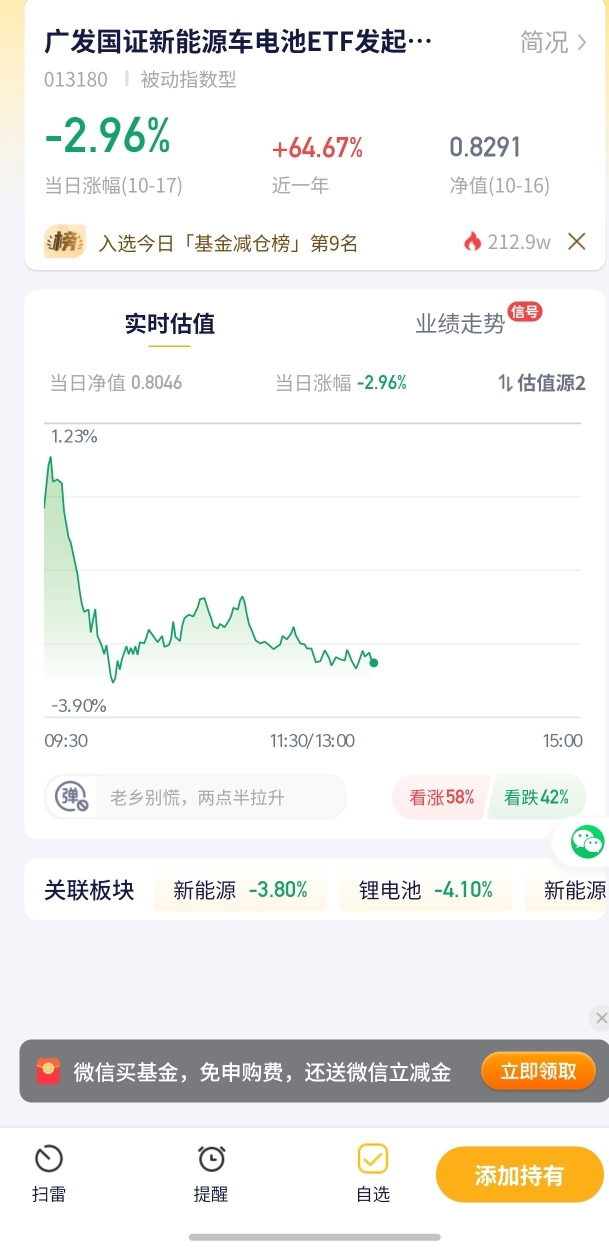 我持有的新能源车电池ETF跌了