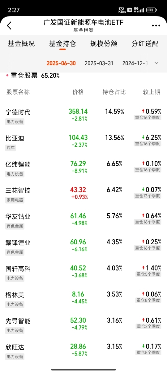 先看基金底子:代码013180(C类),跟踪的是国证新能源车电池指数,成分股全是电池产业链的硬骨头——前十大重仓里,宁德时代(12.5%)、比亚迪(9.8%)占比超22%,还有恩捷股份(隔膜龙头)、亿纬锂能这些全球市占率TOP3的企业。对比其他同类基金,它不搞花里胡哨的主动调仓,换手率才375%,能精准跟上行业涨势,避免基金经理操作失误带来的损耗。