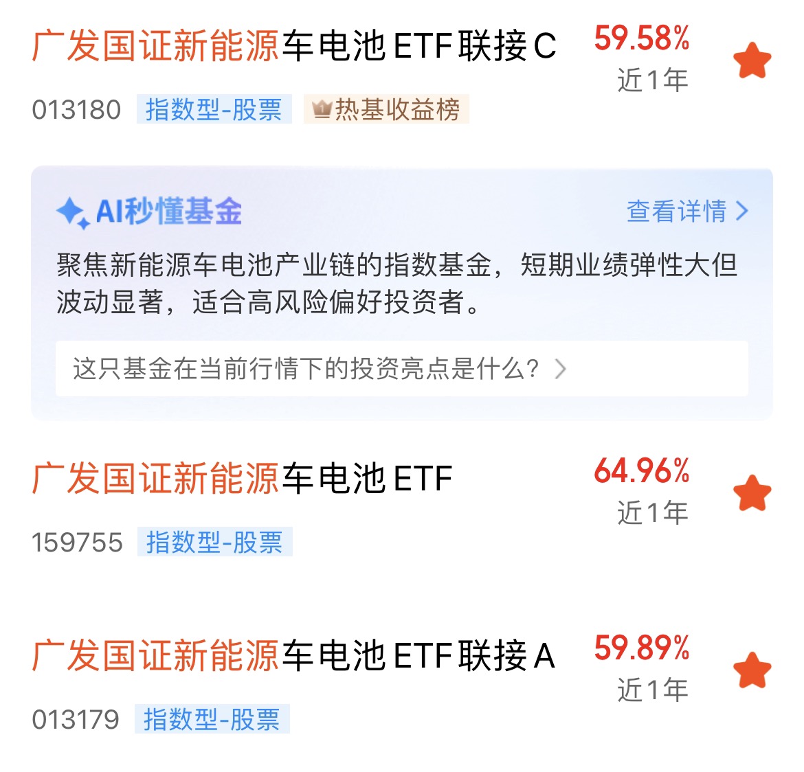 那有没有省心又省力的办法呢?当然有!答案就是投资相关的主题ETF或者它们的联接基金。比如我近期重点关注的——广发国证新能源车电池ETF联接基金(A:013179,C:013180),它跟踪的是国证新能源车电池指数(980032)。这相当于什么?相当于你花一份钱,就能“一键打包”买入整个电池产业链上最核心的那批公司!这个指数的覆盖范围非常广,从制造动力电池的巨头,到搞储能系统的高手,再到处理电池回收的专家,整个链条上各个环节基本都囊括在内了。