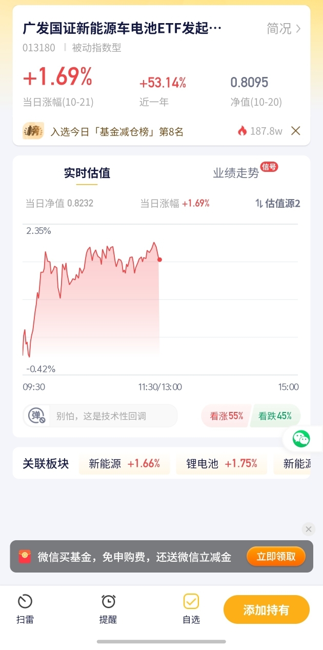 广发国证新能源车电池ETF今日预估涨幅+1.64%!新能源车电池板块今天稳中有升,发展势头不错~. 今天A股的集成电路和灵活配置基金板块表现不俗,科技迷和喜欢灵活配置的投资者今天有收获,接下来可以继续关注这些板块的发展~