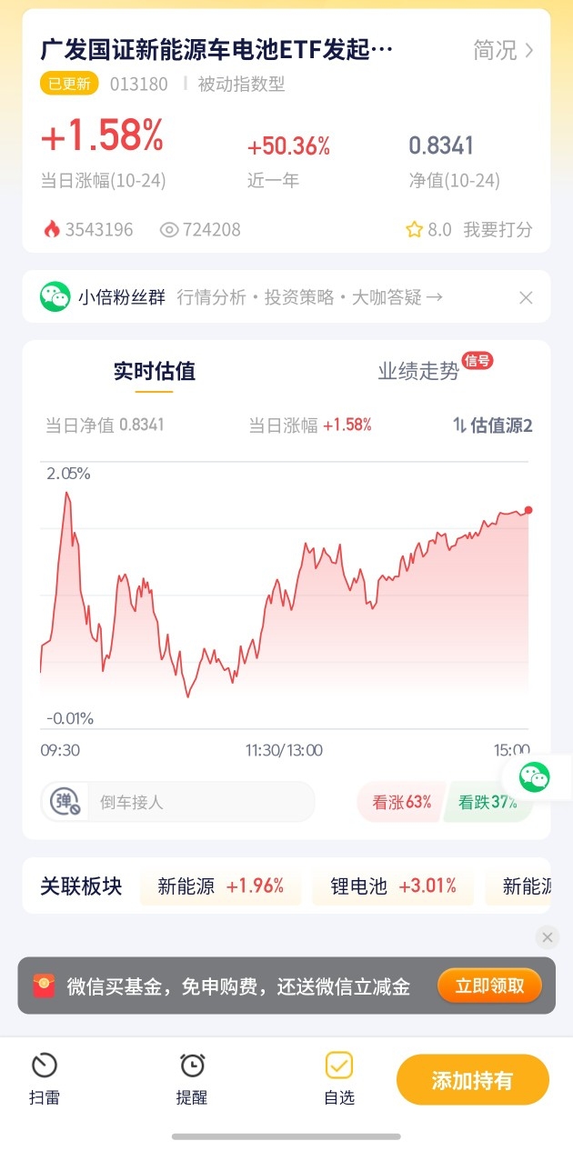 我持有的新能源车电基金涨了1.58%