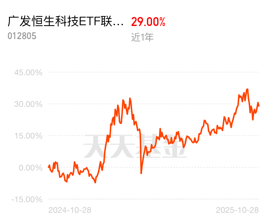 还在犹豫补仓哪只的可以看看恒生科技,港股科技股今年势头蛮不错,我这只$广发恒生科技ETF联接(QDII)C$