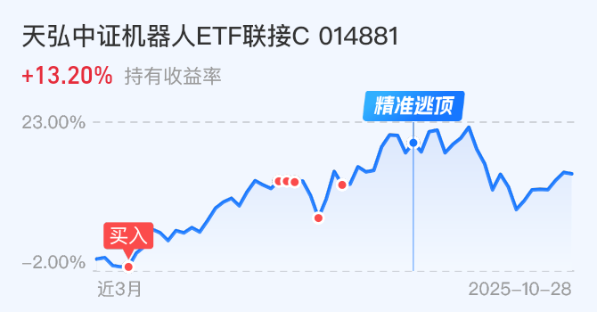 国内首款鸿蒙人形机器人亮相,表明机器人生态自主化发展进一步加快。消息面偏利好,加上板块近期表现平平,资金高切低板块今日低开早盘震荡高走便进行了反弹,不过市场弱拉升也无量,板块突破均线阻力未能稳住盘中又震荡回落了,截至发稿,维持小幅上涨。板块无动力直接上攻,再次可能也是需要震荡蓄力,震荡充分再继续上行。今日不动。$天弘中证机器人ETF发起联接C(OTCFUND|014881)$